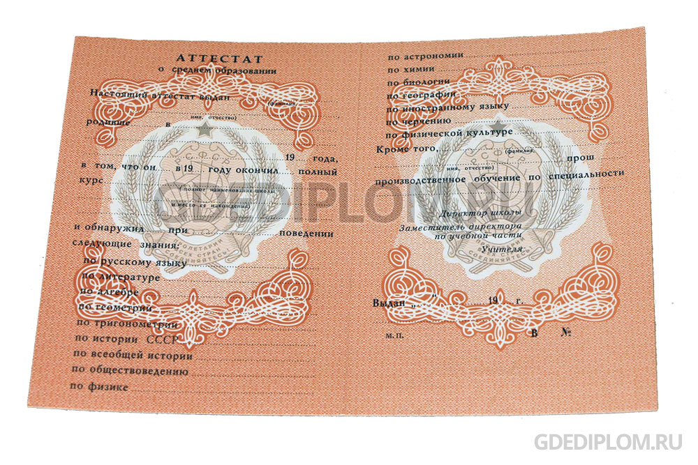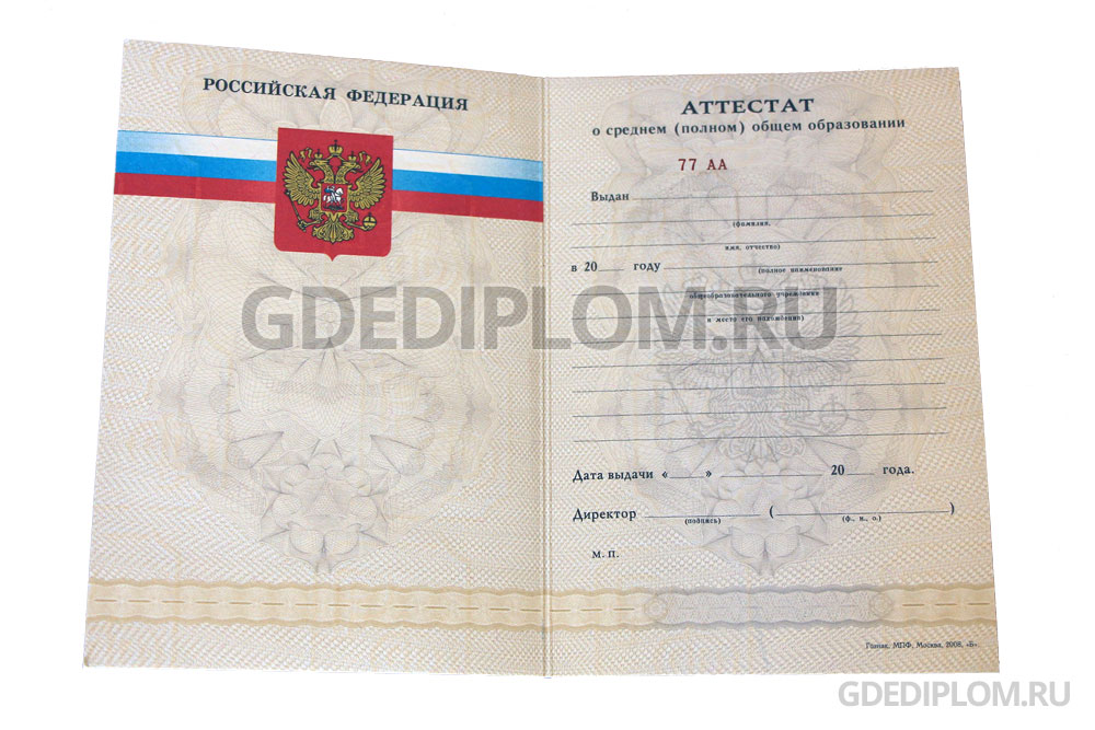 Продажа аттестатов любой школы России. Изготавливаются на защищенных бланках государственного образца. В комплект каждого документа входит: бланк аттестата, вкладыш (приложение), твердая обложка синего цвета. Заполняем по государственным стандартам, актуальным на нужный Вам период, заверяем печатью, подписью директора и других ответственных лиц. Ознакомьтесь с описанием, фотографиями и ценами документов ниже. Подходят для поступления в ВУЗы, ССУЗы, принимающие на базе 11 классов, а также для предъявления по месту требования!