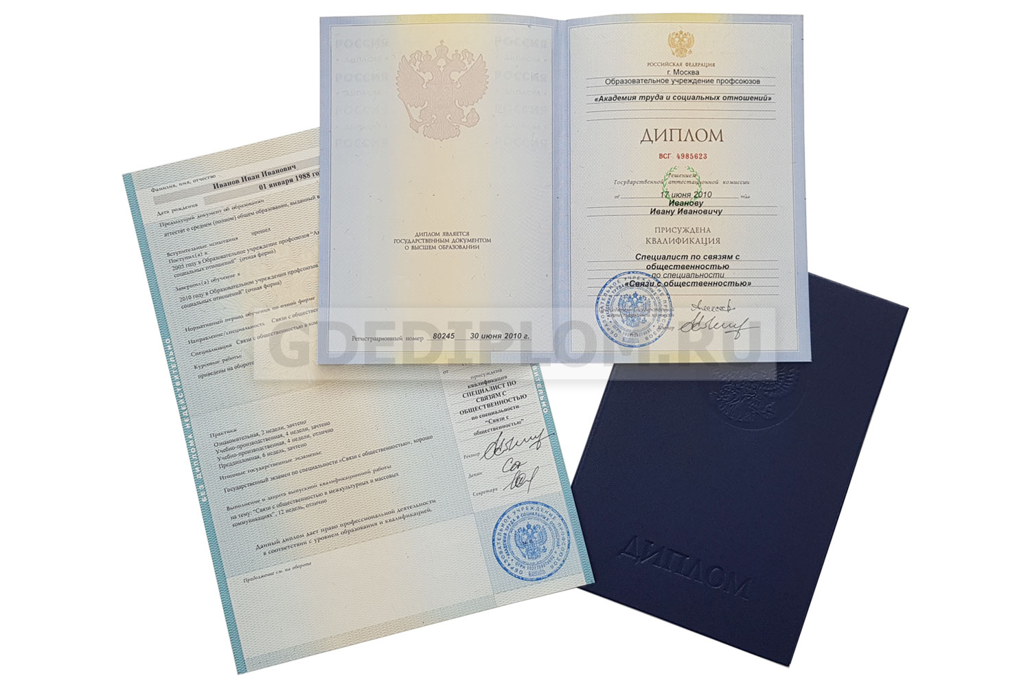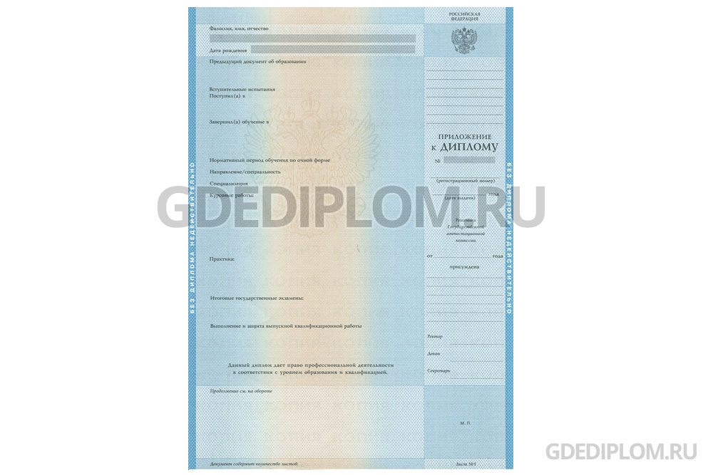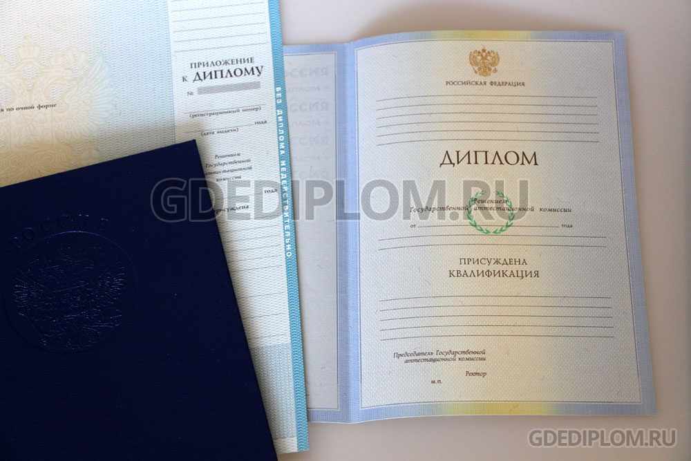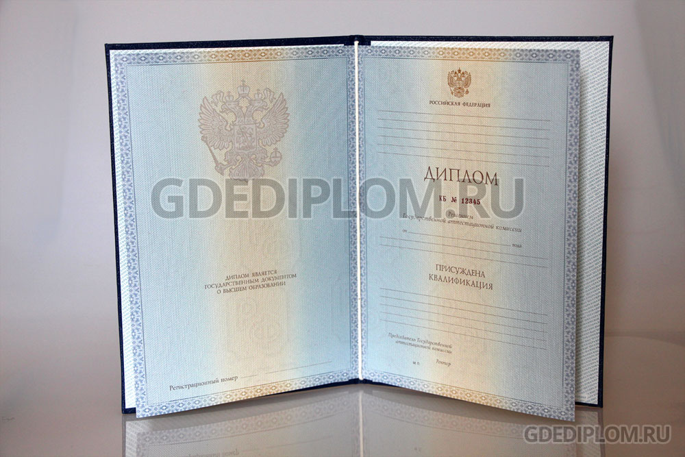 На нашем сайте Вы можете приобрести диплом как в Москве так и в других регионах России. Выберите любую квалификацию, учебное заведение, специальность, а мы правильно, качественно и быстро сделаем для Вас подходящий документ. Дипломы изготавливаются на бланках государственного образца, имеющих предусмотренные степени защиты: микротекст, светящиеся элементы и микроволокна, водяные знаки, слово «КОПИЯ» при ксерокопировании и прочее. В комплект входит бланк, приложение, твердая обложка синего цвета.